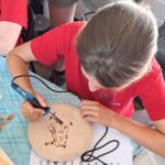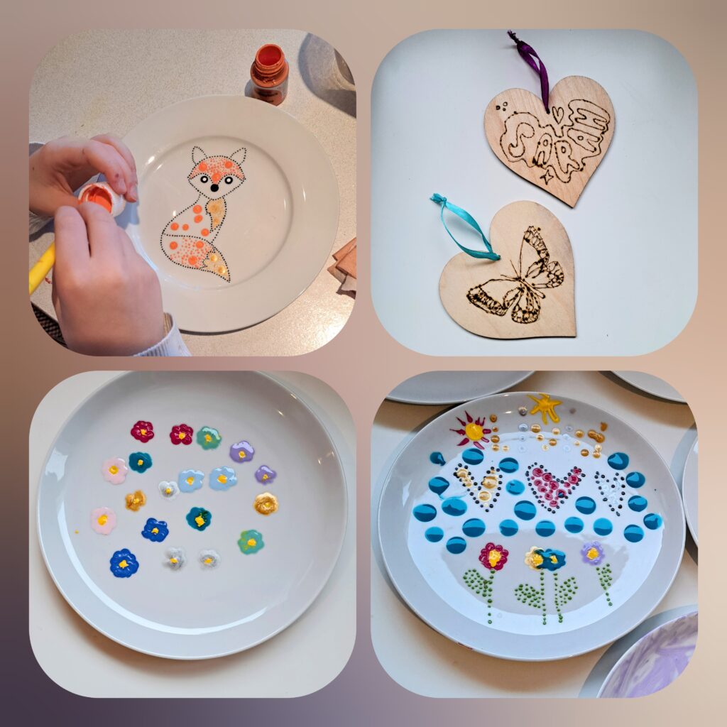 De kinderen bewerken een product m.b.v. stipkunst. Ze kunnen bijvoorbeeld kiezen uit een porseleinen bordje, een houten fotolijstje/boekenlegger of een houten hanger in de vorm van een hart. - Pyrografiefeest (vanaf 9 jaar)